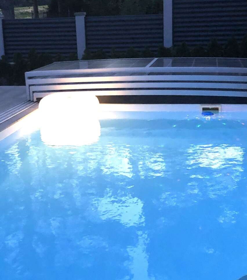 - Krytý bazén 3 × 6 m, hĺbka 1,5 m (osvetlenie, filtrácia, čerpadlo, zakrytie)
