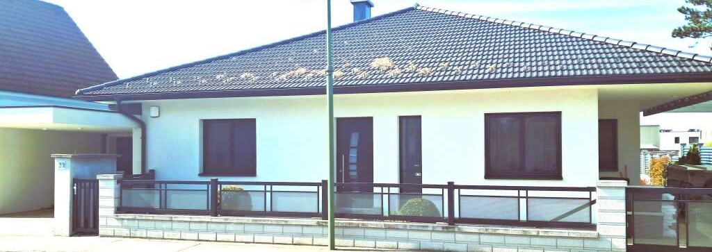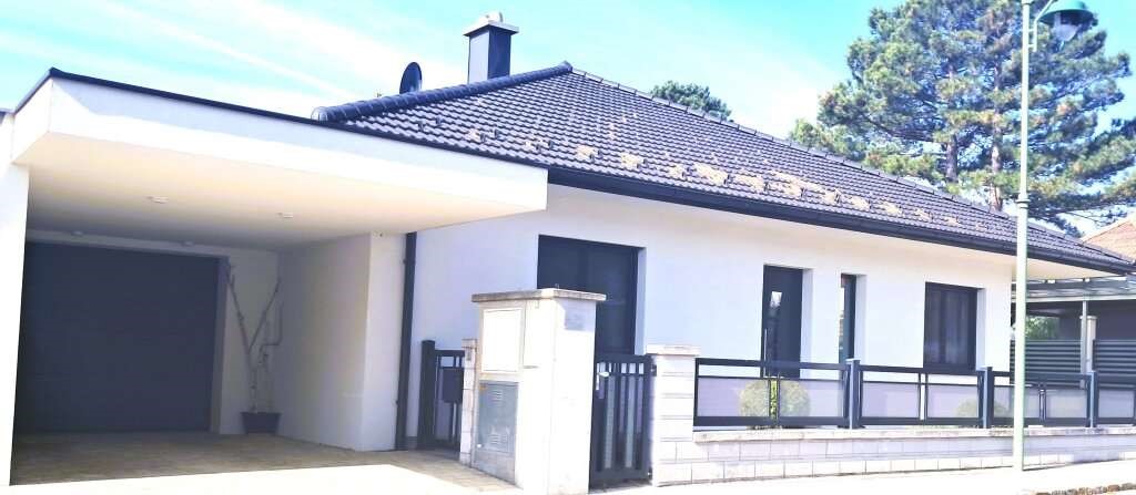 Moderný bezbariérový bungalov bol postavený v roku 2017 a nachádza sa v tichej ulici v obytnej zóne rodinných domov, len 5 minút pešo od viníc Guntramsdorfu. Dom ponúka funkčný pôdorys, kvalitné prevedenie a nadštandardné vybavenie vrátane vykurovanej pivnice s obytným využitím, samostatnej ubytovacej jednotky pre hostí, zimnej záhrady, priestrannej terasy a súkromného bazéna. Nehnuteľnosť je pripravená na okamžité bývanie bez ďalších investícií.